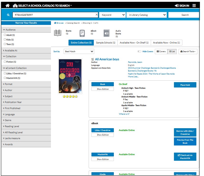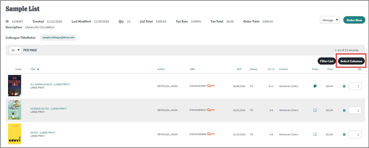 2. Select the OPAC Search icon next to the ISBN of the title that you would like to query in the OPAC: