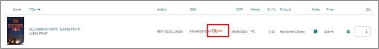 2. Select the OPAC Search icon next to the ISBN of the title that you would like to query in the OPAC:
